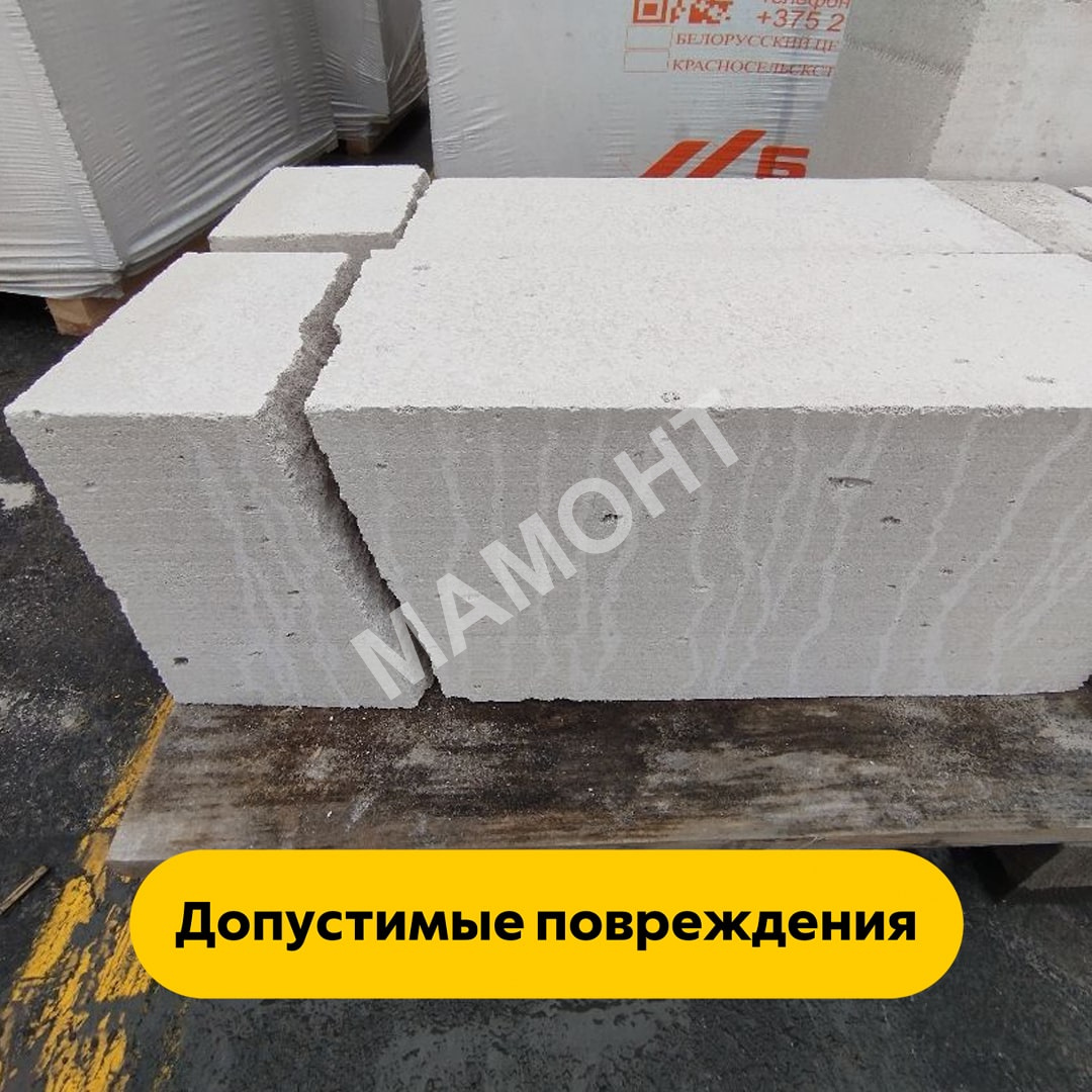 Данный товар реализуется "как есть" с поддона без возможности отбора! - Допускаются сколы по краям и углам. - Допускается до 10% боя (блок расколот пополам). Такие блоки не считаются браком и не принимаются к возврату, т.к. газосиликатные блоки с указанными нюансами соответствует техническим нормам и могут в полной мере быть применены при возведении перегородок и ненесущих стен без потери прочности (сколы замазываются клеящим раствором, расколотые половинки используются на краях). Подробнее. |