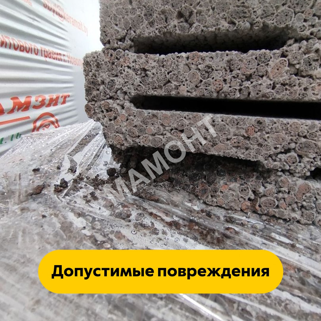 Данный товар реализуется "как есть" с поддона без возможности отбора! - Допускаются сколы по краям и углам. - Допускается до 5% боя (блок расколот пополам). Такие блоки не считаются браком и не принимаются к возврату, т.к. керамзитобетонные блоки с указанными нюансами соответствует техническим нормам и могут в полной мере быть применены при возведении перегородок и ненесущих стен без потери прочности (сколы замазываются клеящим раствором, расколотые половинки используются на краях). Подробнее. |