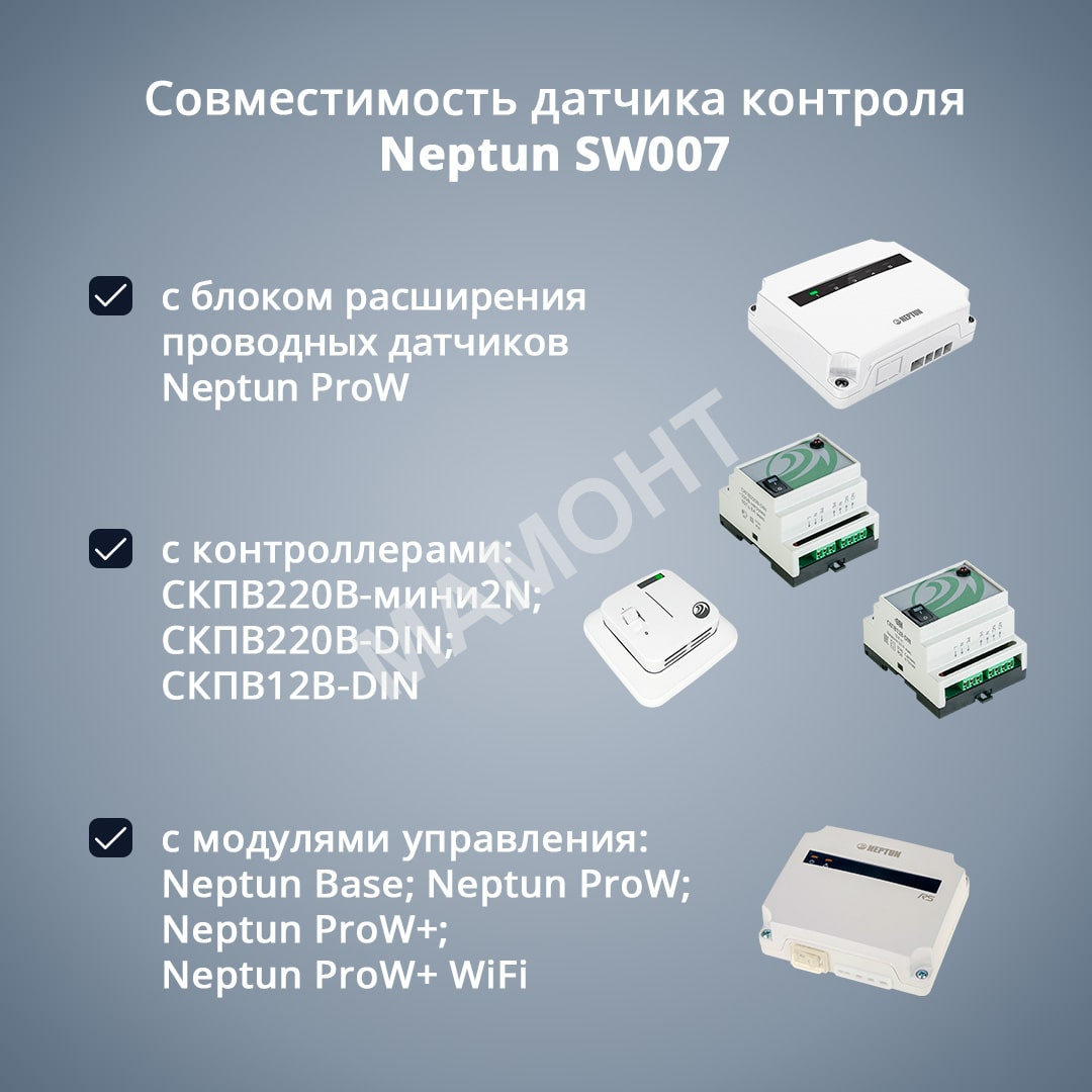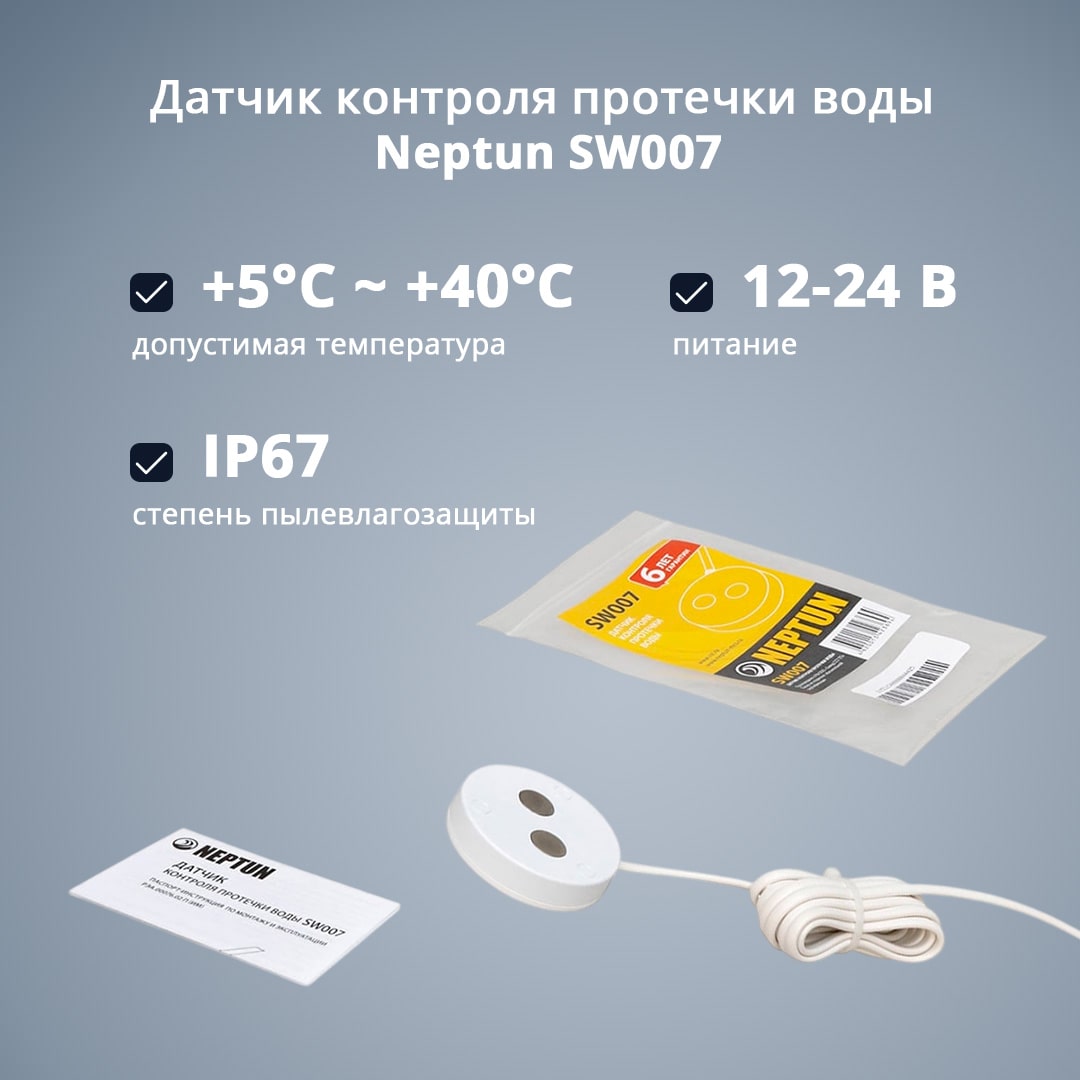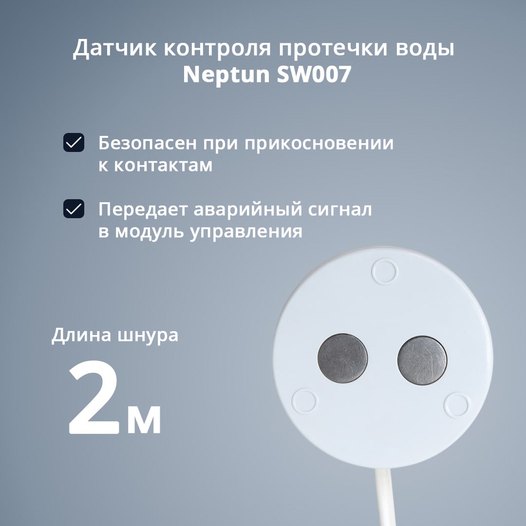 На тип датчиков (беспроводные или проводные). В зависимости от места установки и и близости к контроллеру это может быть принципиально. Датчики контроля протечки воды проводные Neptun имеют несколько преимуществ перед беспроводными датчиками, так как они обеспечивают более надежную связь между датчиком и контроллером, а также не требуют замены батареек.