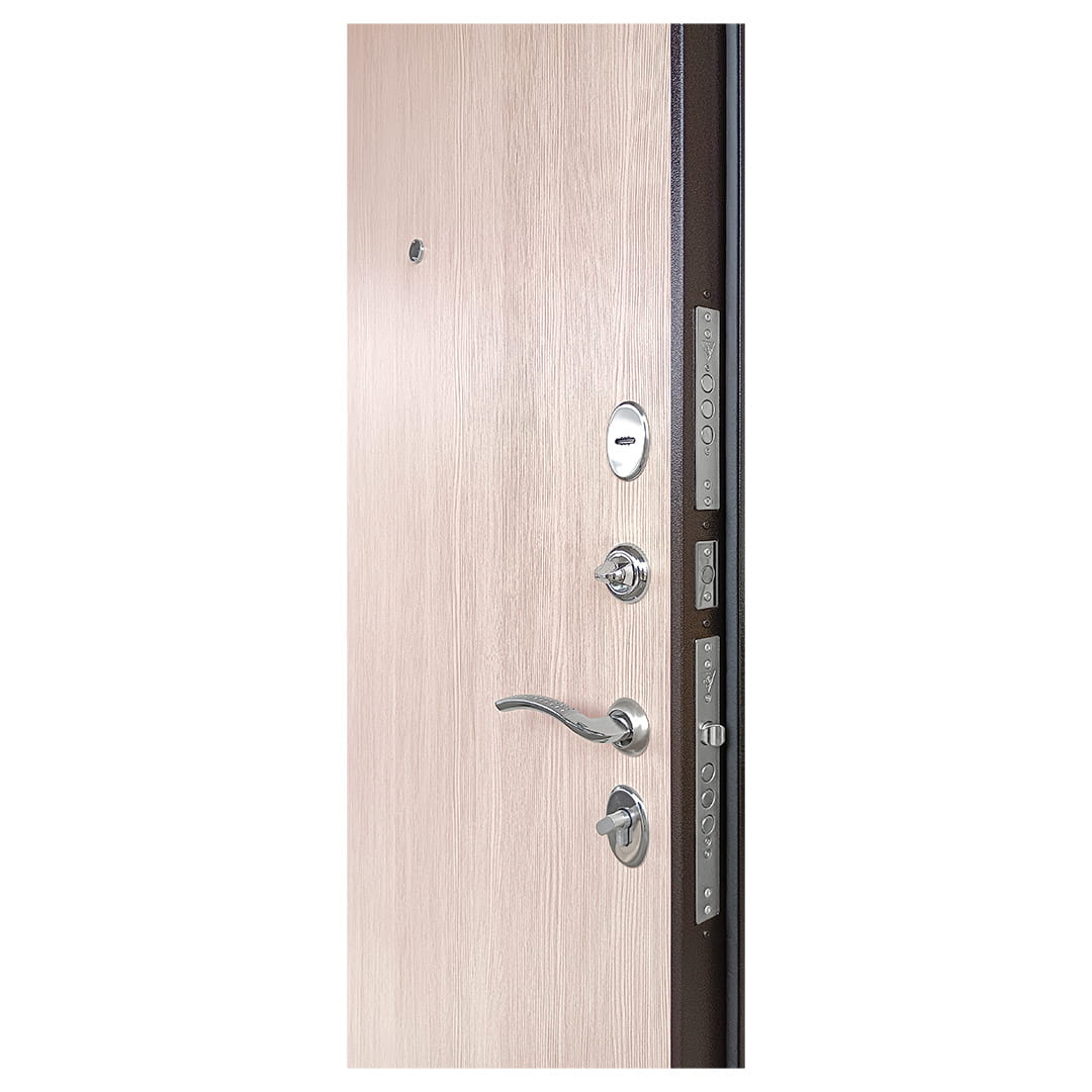 | Замки (2 шт.) | Верхний - сувальдный «ПРОМЕТ», 3 ригеля 16 мм, нижний - цилиндровый (ключ-вертушка) «ПРОМЕТ», 3 ригеля 16 мм | |