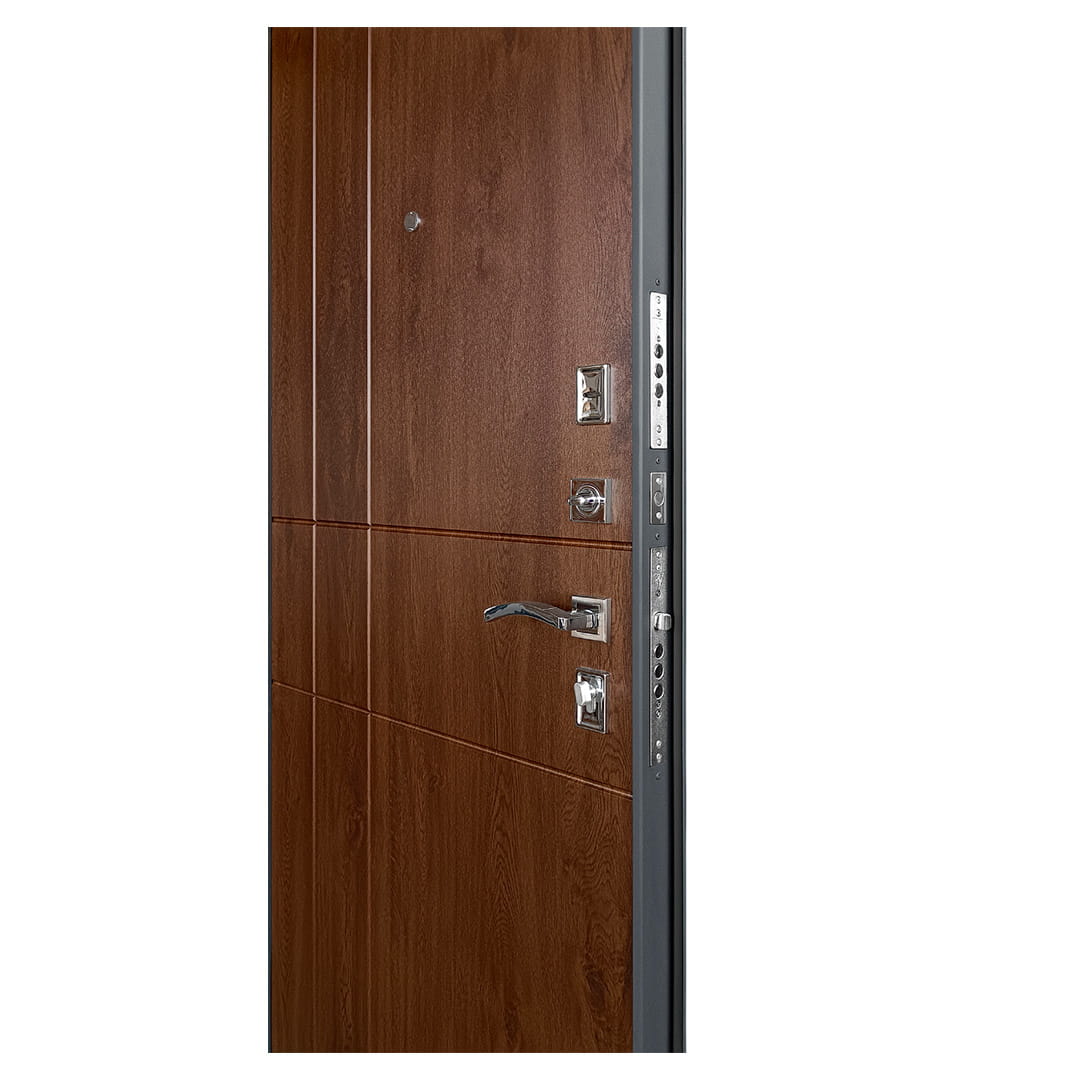 | Замки (2 шт.) | Верхний - сувальдный «ПРОМЕТ», 3 ригеля 16 мм, нижний - цилиндровый (ключ-вертушка) «ПРОМЕТ», 3 ригеля 16 мм | |