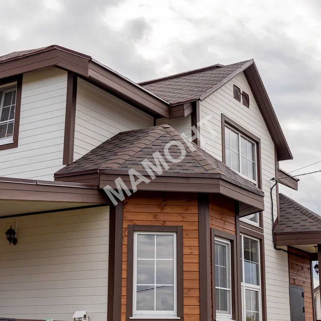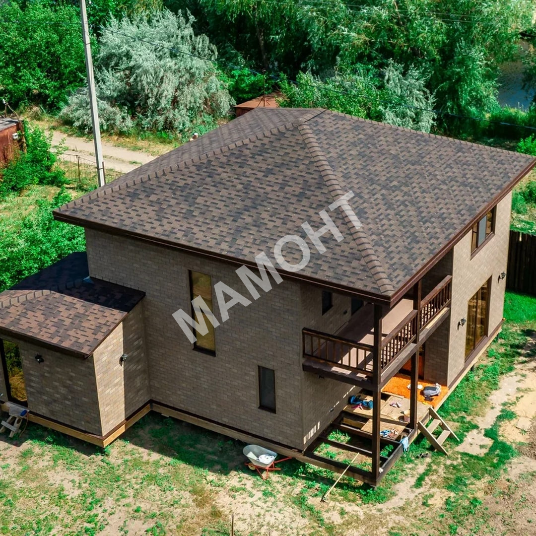 Гибкость материала позволяет монтировать черепицу на крыши разных, в том числе сложных, форм.