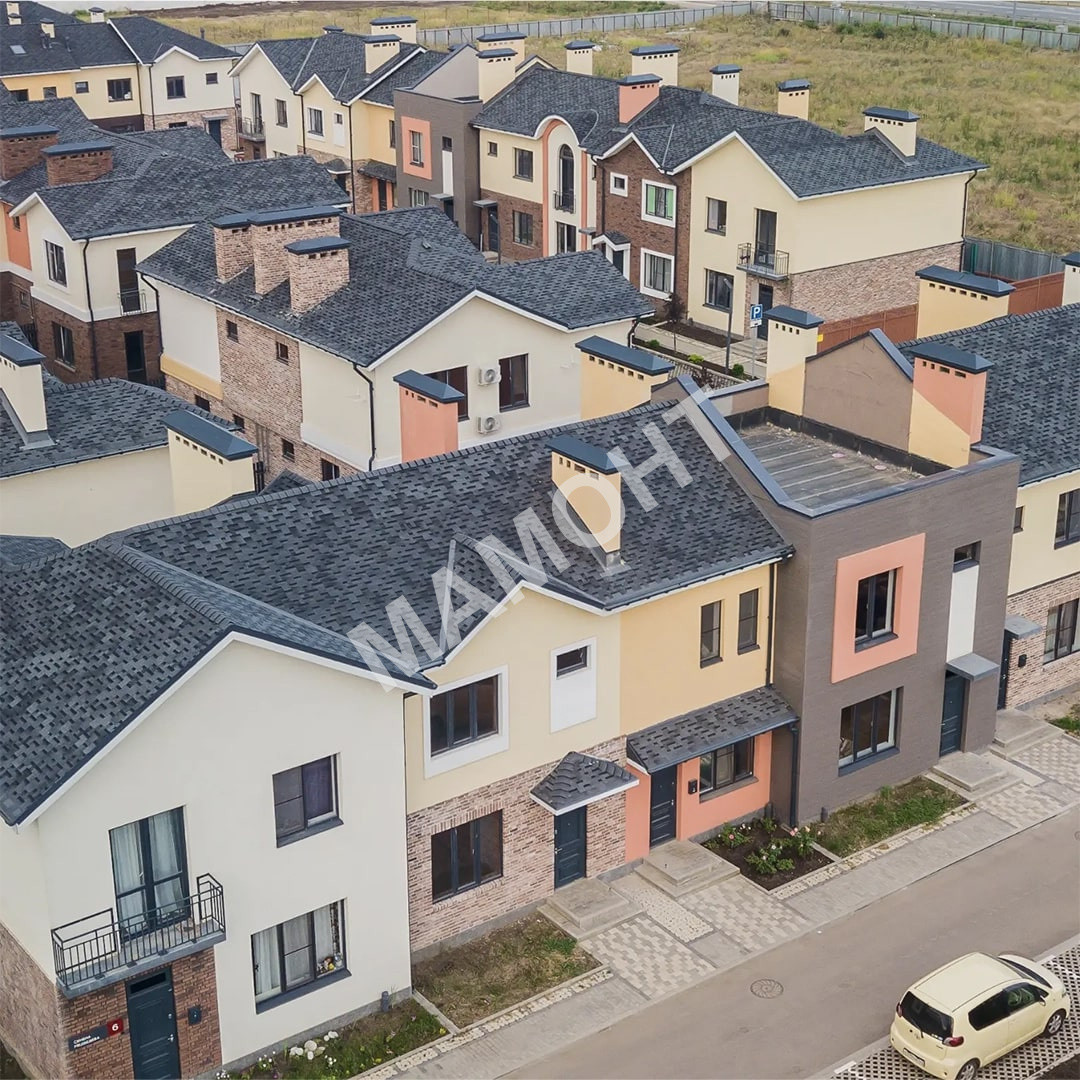 Гибкость материала позволяет монтировать черепицу на крыши разных, в том числе сложных, форм.