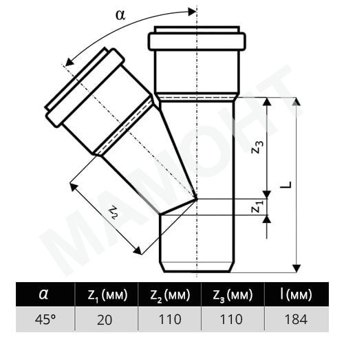 | Назначение | внутренняя канализация | |
