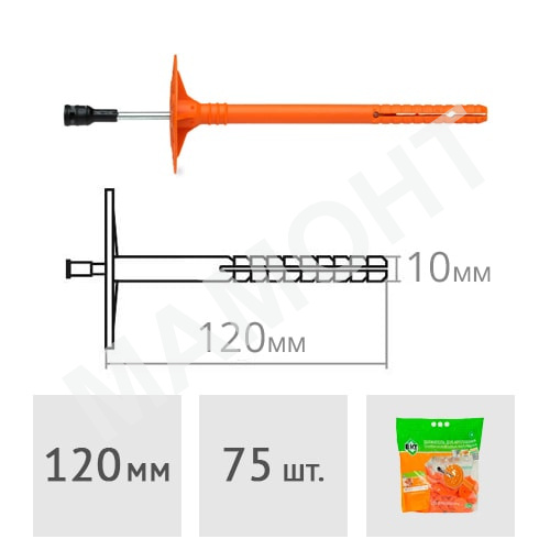 | Узнайте больше о товаре здесь: | Дюбель для теплоизоляции 10 x 120 мм с металлическим гвоздем и термоголовкой DTI-10 (75 шт.) | |