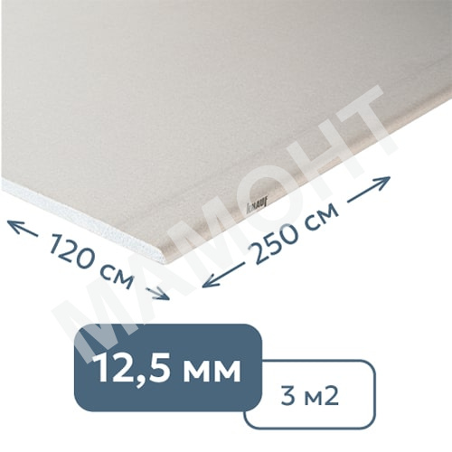 | Узнайте больше о товаре здесь: | Гипсокартон стеновой (12.5 мм) обычный Knauf 120 x 250 см | |