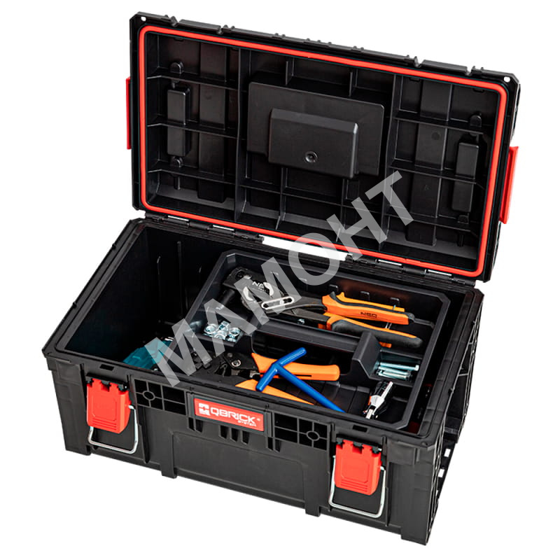2. Qbrick System PRIME Toolbox 250 Vario 535х327х271 мм - это большой инструментальный ящик объемом 26 литров. Водонепроницаемая и пылезащищенная конструкция (IP66), полиамидные крепления с металлическими стяжками, а также усиленная конструкция являются гарантией защиты помещенных в него инструментов. Ящики PRIME выдерживают давление до 120 кг благодаря дополнительным ребрам жесткости, что дает возможность создавать удобные рабочие платформы.